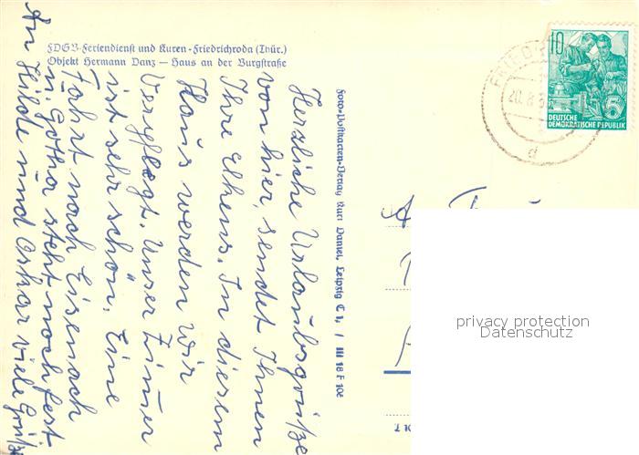 73613874 alte Postkarte Friedrichroda FDGB Feriendienst und Kuren Objekt Hermann Danz postalisch gelaufen Erhaltung siehe scans [FriedD77] KatCode: 11110016067019