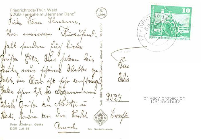 72703368 alte Postkarte Friedrichroda FDGB Ferienheim Hermann Danz postalisch gelaufen Erhaltung siehe scans [FriedD77] KatCode: 11110016067019