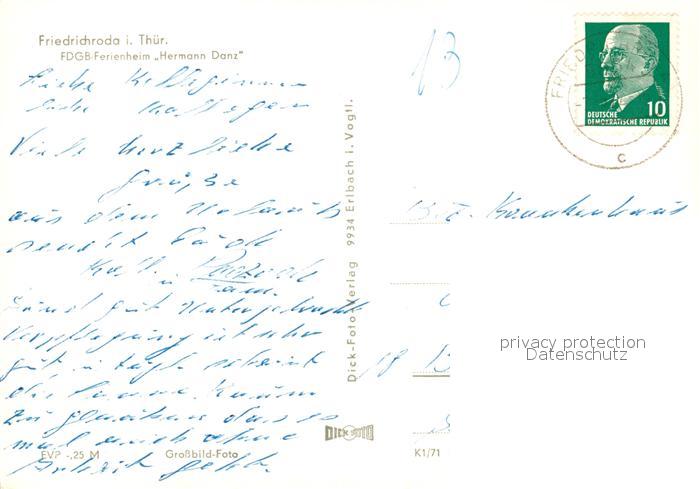73100612 alte Postkarte Friedrichroda FDGB Ferienheim Hermann Danz postalisch gelaufen Erhaltung siehe scans [KathaD81] KatCode: 11110016067019