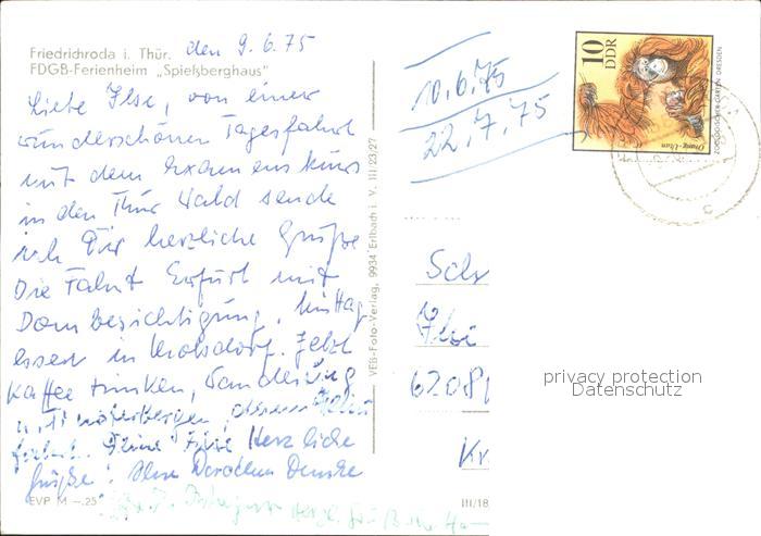 72255004 alte Postkarte Friedrichroda FDGB Ferienheim Spiessberghaus postalisch gelaufen Erhaltung siehe scans KatCode: 11110016067019