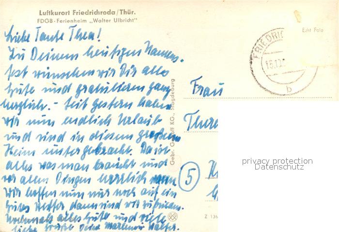 73039987 alte Postkarte Friedrichroda FDGB Ferienheim Walter Ulbricht postalisch gelaufen Erhaltung siehe scans [KathaD81] KatCode: 11110016067019