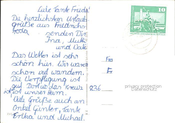72341913 alte Postkarte Friedrichroda FDGB Heim Walter Ulbricht Blick von Waldstrasse Bahnhof Reinhardsbrunn Schloss postalisch gelaufen Erhaltung siehe scans KatCode: 11110016067019