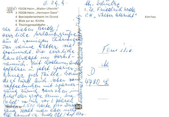 73907906 Friedrichroda FDGB Heime Walter Ulbricht und Hermann Danz Betriebsferienheim im Grund Ev Kirche Thueringerwaldbahn postalisch nicht gelaufen Erhaltung siehe scans [FriedD77] KatCode: 11110016067019
