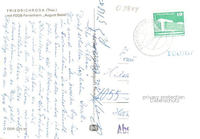 72925657 alte Postkarte Friedrichroda Ferienheim August Bebel postalisch gelaufen Erhaltung siehe scans [PaolaD17] KatCode: 11110016067019