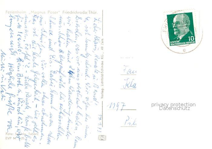 72944938 alte Postkarte Friedrichroda Ferienheim Magnus Poser postalisch gelaufen Erhaltung siehe scans [FriedD77] KatCode: 11110016067019