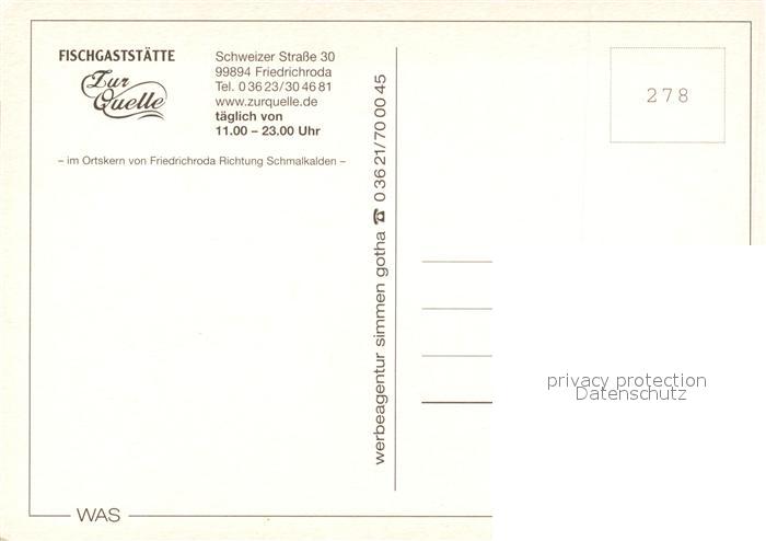 73613934 Friedrichroda Fischgaststaette Zur Quelle postalisch nicht gelaufen Erhaltung siehe scans [FriedD77] KatCode: 11110016067019