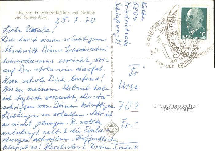 72373477 alte Postkarte Friedrichroda Gottlob Schauenburg postalisch gelaufen Erhaltung siehe scans KatCode: 11110016067019