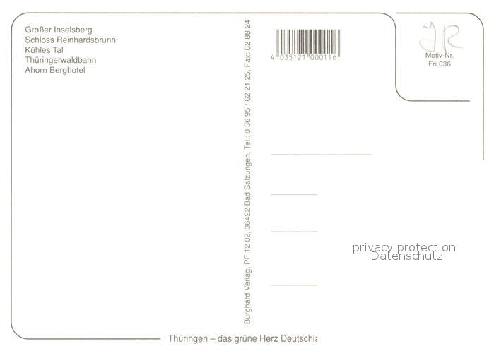73268177 Friedrichroda Grosser Inselsberg Fliegeraufnahme Schloss Reinhardsbrunn Kuehles Tal Thueringerwaldbahn Ahorn Berghotel postalisch nicht gelaufen Erhaltung siehe scans [FriedD77] KatCode: 11110016067019
