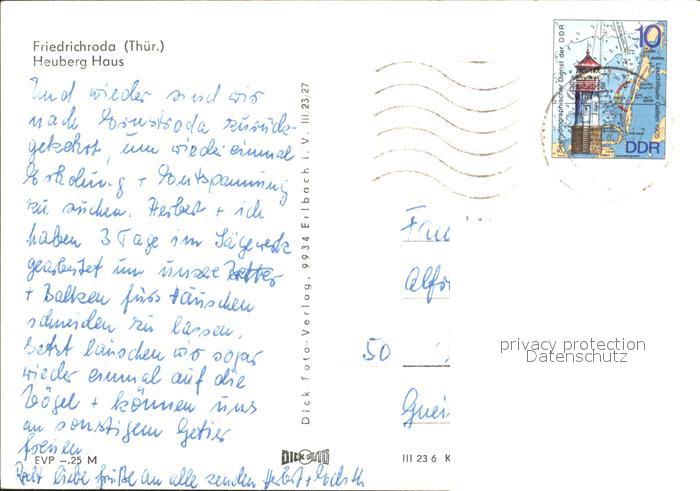 72114955 alte Postkarte Friedrichroda Heuberg Haus postalisch gelaufen Erhaltung siehe scans KatCode: 11110016067019