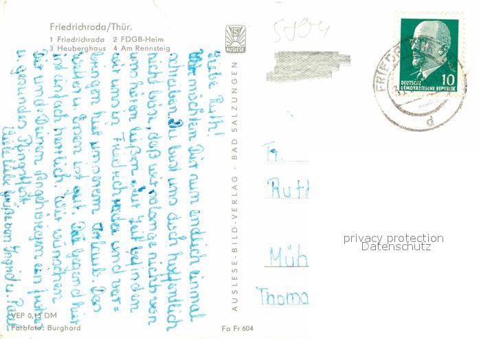 72749761 alte Postkarte Friedrichroda Heuberghaus Rennsteig FDGB Heim postalisch gelaufen Erhaltung siehe scans [KathaD81] KatCode: 11110016067019
