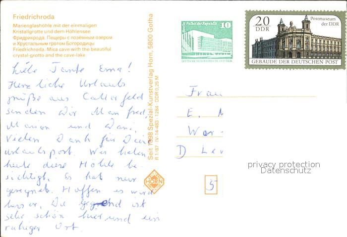 72217802 alte Postkarte Friedrichroda Marienglashoele postalisch gelaufen Erhaltung siehe scans KatCode: 11110016067019
