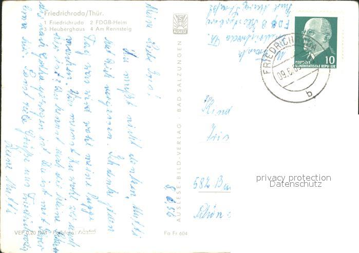 72373066 alte Postkarte Friedrichroda Panorama FDGB Heim Heuberghaus Rennsteig Viehweide Kuehe postalisch gelaufen Erhaltung siehe scans KatCode: 11110016067019
