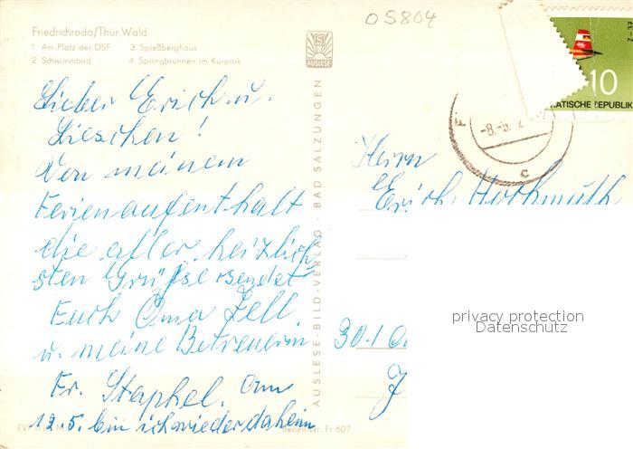 73075997 alte Postkarte Friedrichroda Platz der DSF Spiessberghaus Schwimmbad Springbrunnen Kurpark postalisch gelaufen Erhaltung siehe scans [KathaD81] KatCode: 11110016067019