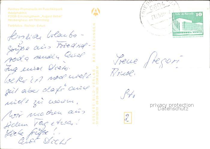 72312396 alte Postkarte Friedrichroda Puschkinpark Adolphsblick FDGB Heim August Bebel Heuberghaus postalisch gelaufen Erhaltung siehe scans KatCode: 11110016067019