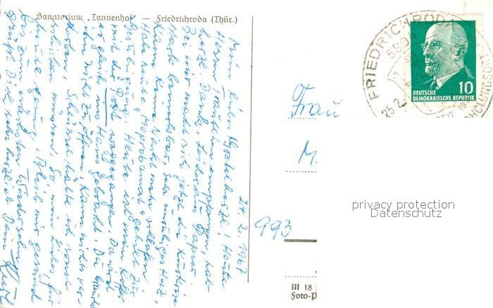 73044747 alte Postkarte Friedrichroda Sanatorium Tannenhof postalisch gelaufen Erhaltung siehe scans [PaolaD17] KatCode: 11110016067019