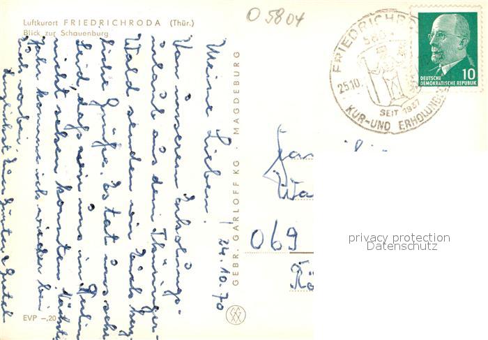 72925708 alte Postkarte Friedrichroda Schauenburg postalisch gelaufen Erhaltung siehe scans [PaolaD17] KatCode: 11110016067019