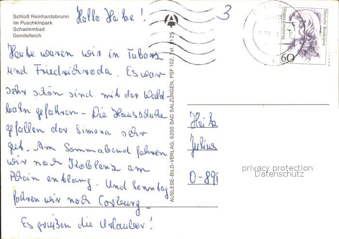 72337008 alte Postkarte Friedrichroda Schloss Reinhardsbrunn Puschkinpark Schwimmbad Gondelteich postalisch gelaufen Erhaltung siehe scans KatCode: 11110016067019