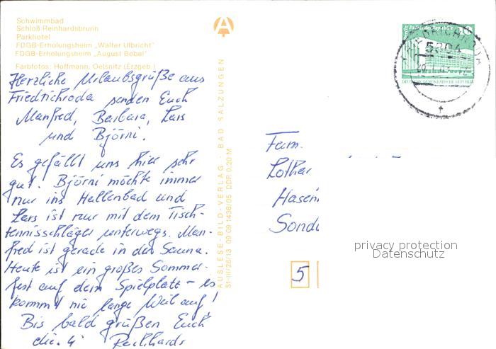72179875 alte Postkarte Friedrichroda Schwimmbad Parkhotel FDGB- Erholungsheim August Bebel postalisch gelaufen Erhaltung siehe scans KatCode: 11110016067019