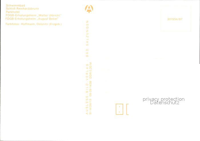 72413964 Friedrichroda Schwimmbad Schloss Reinhardsbrunn Parkhotel FDGB Erholungsheime Walter Ulbricht und Aug Bebel postalisch nicht gelaufen Erhaltung siehe scans KatCode: 11110016067019