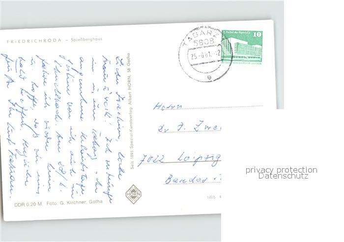 71964169 alte Postkarte Friedrichroda Spiessberghaus postalisch gelaufen Erhaltung siehe scans KatCode: 11110016067019