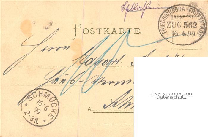 33549045 alte Postkarte Friedrichroda Stadtbild mit Kirche Hotel Bahnhof Litho postalisch gelaufen Bahnpost Erhaltung siehe scans [FriedD77] KatCode: 11110016067019