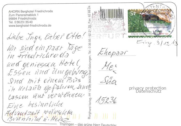 74038833 alte Postkarte Friedrichroda Thueringen AHORN Berghotel Fremdenzimmer Hallenbad Panorama postalisch gelaufen Erhaltung siehe scans [FriedD77] KatCode: 11110016067019