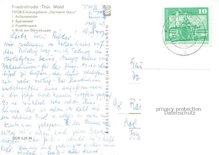 74044296 alte Postkarte Friedrichroda Thueringen FDGB Erholungsheim Hermann Danz Speisesaal Puschkinpark Gaensekuppe postalisch gelaufen Erhaltung siehe scans [WerneD78] KatCode: 11110016067019