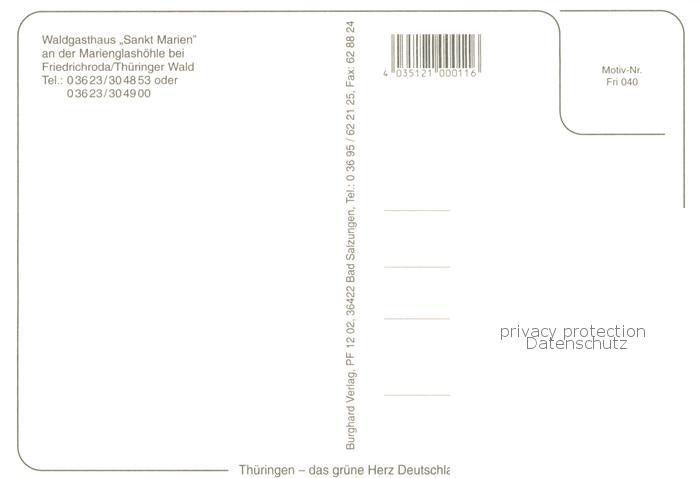 73760111 Friedrichroda Waldgasthaus Sankt Marien an der Marienglashoehle Terrasse Gaststube postalisch nicht gelaufen Erhaltung siehe scans [WerneD78] KatCode: 11110016067019