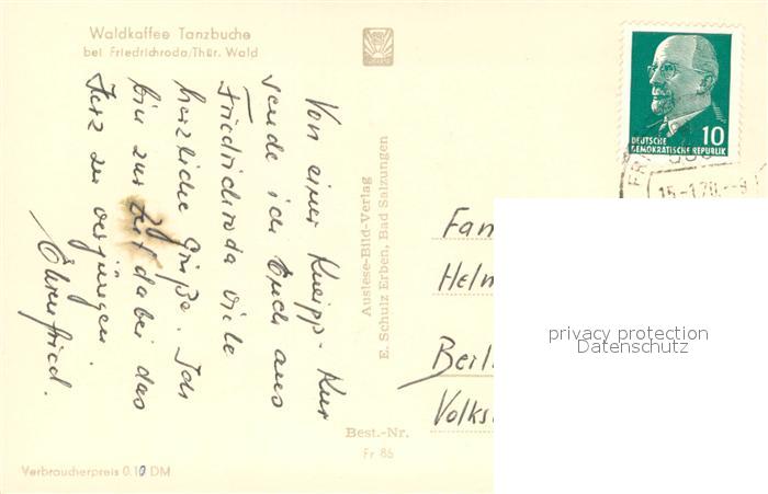 73675118 alte Postkarte Friedrichroda Waldkaffee Tanzbuche Thueringer Wald postalisch gelaufen Erhaltung siehe scans [FriedD77] KatCode: 11110016067019