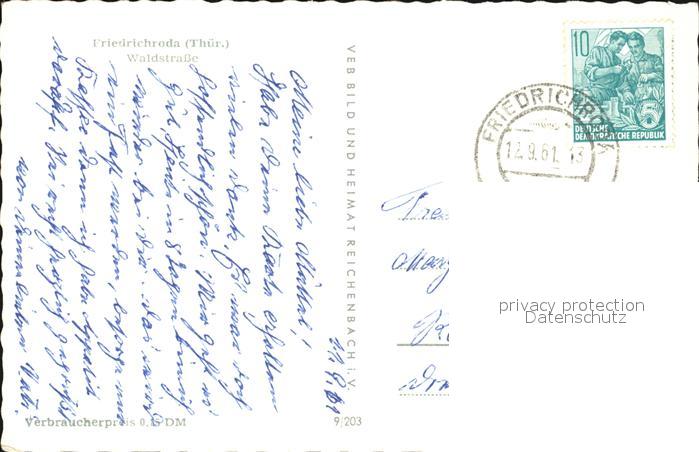 72400443 alte Postkarte Friedrichroda Waldstrasse postalisch gelaufen Erhaltung siehe scans KatCode: 11110016067019