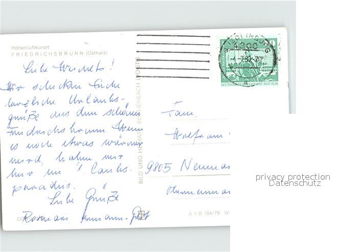 72391428 alte Postkarte Friedrichsbrunn Harz postalisch gelaufen Erhaltung siehe scans KatCode: 11110015085115