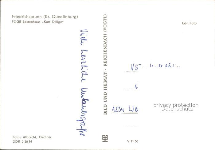 72008520 Friedrichsbrunn Harz FDGB Bettenhaus Kurt Dillge postalisch nicht gelaufen Erhaltung siehe scans KatCode: 11110015085115