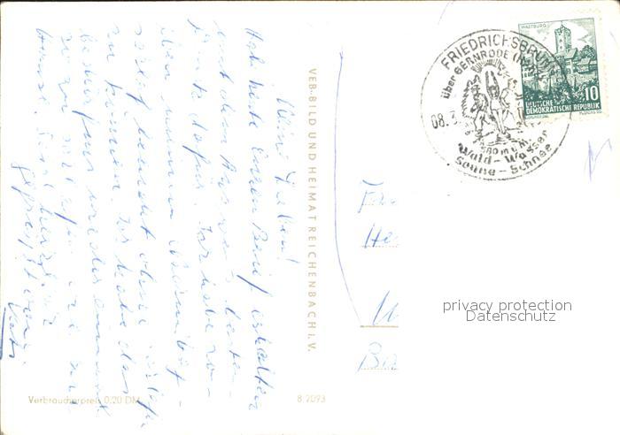 72326802 alte Postkarte Friedrichsbrunn Harz FDGB Verpflegungsstaette Kurt Dilge Friedrichsbrunnen Teilansicht Blick vom Sanatorium postalisch gelaufen Erhaltung siehe scans KatCode: 11110015085115