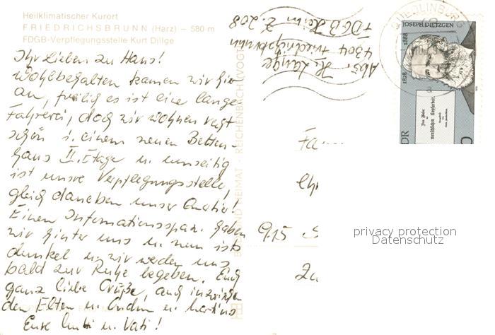 73549848 alte Postkarte Friedrichsbrunn Harz FDGB Verpflegungsstelle Kurt Dilge postalisch gelaufen Erhaltung siehe scans [WerneD78] KatCode: 11110015085115