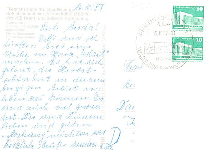 73947372 alte Postkarte Friedrichsbrunn Harz Ferienheim Viktorshoehe Gaststaette Bauernstube Kleiner Speiseraum Grosser Speiseraum postalisch gelaufen Erhaltung siehe scans [WerneD78] KatCode: 11110015085115