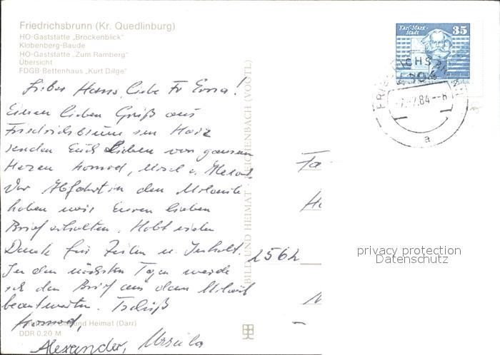 72284952 alte Postkarte Friedrichsbrunn Harz Gaststaette Brockenblick Klobenberg-Baude postalisch gelaufen Erhaltung siehe scans KatCode: 11110015085115