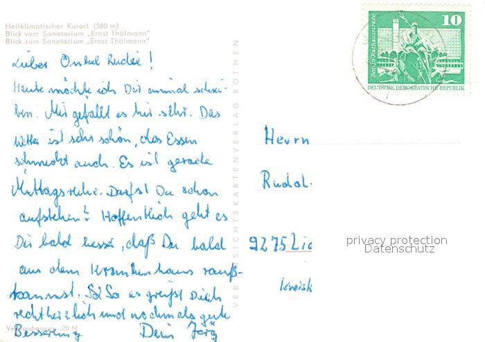 72971386 alte Postkarte Friedrichsbrunn Harz Heilklimatischer Kurort Blick vom Sanatorium Ernst Thaelmann postalisch gelaufen Erhaltung siehe scans [FriedD77] KatCode: 11110015085115