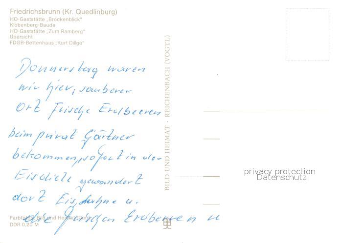 72971388 Friedrichsbrunn Harz HO Gaststaette Brockenblick Klobenberg Baude HO Gaststaette Zum Ramberg FDGB Bettenhaus Kurt Dillge postalisch nicht gelaufen Erhaltung siehe scans [FriedD77] KatCode: 11110015085115