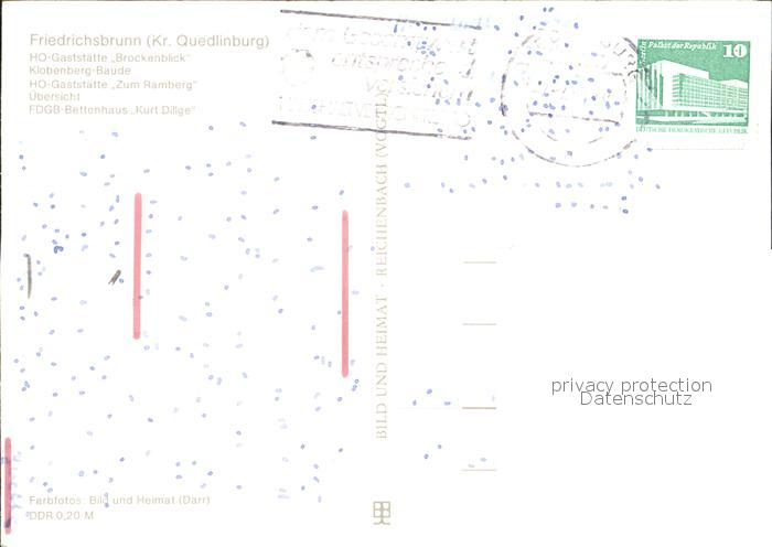 72306598 alte Postkarte Friedrichsbrunn Harz HO Gaststaette Brockenblick Klobenberg Baude Panorama FDGB Bettenhaus Kurt Dillge postalisch gelaufen Erhaltung siehe scans KatCode: 11110015085115