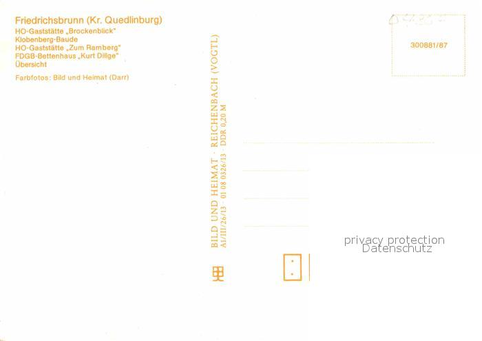 72884692 Friedrichsbrunn Harz HOG Brockenbaeck Klobenberg Baude HOG Zum Ramberg FDGB Bettenhaus Kurt Dilge Panorama postalisch nicht gelaufen Erhaltung siehe scans [WerneD78] KatCode: 11110015085115