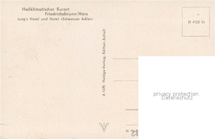 73710444 Friedrichsbrunn Harz Jungs Hotel und Hotel Schwarzer Adler postalisch nicht gelaufen Erhaltung siehe scans [LiesaD40] KatCode: 11110015085115