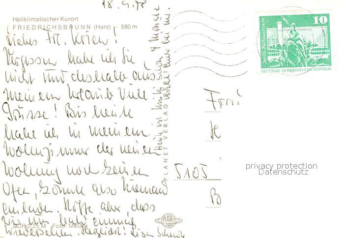 72985706 alte Postkarte Friedrichsbrunn Harz Kurpark postalisch gelaufen Erhaltung siehe scans [WerneD78] KatCode: 11110015085115