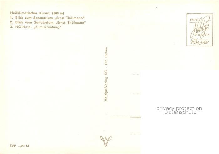 73593351 Friedrichsbrunn Harz Panorama Sanatorium Ernst Thaelmann HO Hotel Zum Ramberg postalisch nicht gelaufen Erhaltung siehe scans [FriedD77] KatCode: 11110015085115