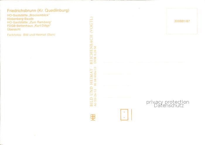 72424029 Friedrichsbrunn Harz Restaurants Brockenblick und Zum Ramberg Klobenberg-Baude postalisch nicht gelaufen Erhaltung siehe scans KatCode: 11110015085115