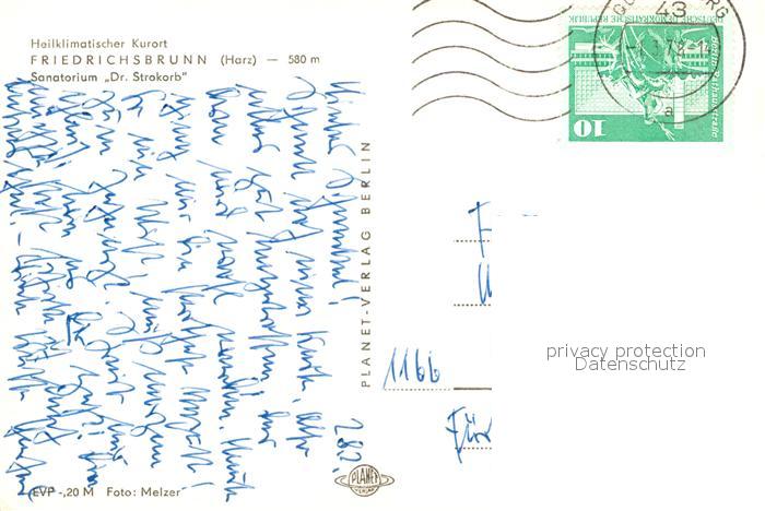 73162857 alte Postkarte Friedrichsbrunn Harz Sanatorium Dr Strokorb postalisch gelaufen Erhaltung siehe scans [WerneD78] KatCode: 11110015085115