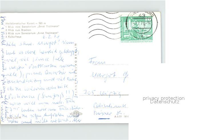 72391462 alte Postkarte Friedrichsbrunn Harz Sanatorium Ernst Thaelmann Brocken Kulturhaus postalisch gelaufen Erhaltung siehe scans KatCode: 11110015085115