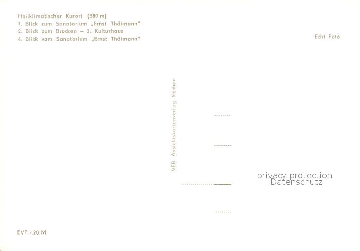 72920290 Friedrichsbrunn Harz Sanatorium Ernst Thaelmann Brocken Kulturhaus postalisch nicht gelaufen Erhaltung siehe scans [LiesaD40] KatCode: 11110015085115