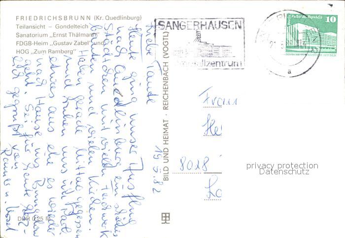 72401383 alte Postkarte Friedrichsbrunn Harz Sanatorium Ernst Thaelmann Restaurant zum Ramberg postalisch gelaufen Erhaltung siehe scans KatCode: 11110015085115