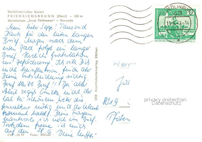 73095165 alte Postkarte Friedrichsbrunn Harz Sanatorium Ernst Thaelmann Veranda postalisch gelaufen Erhaltung siehe scans [KathaD81] KatCode: 11110015085115