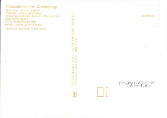72424030 Friedrichsbrunn Harz Sanatorium Restaurant Zum Ramberg Erholungsheime postalisch nicht gelaufen Erhaltung siehe scans KatCode: 11110015085115